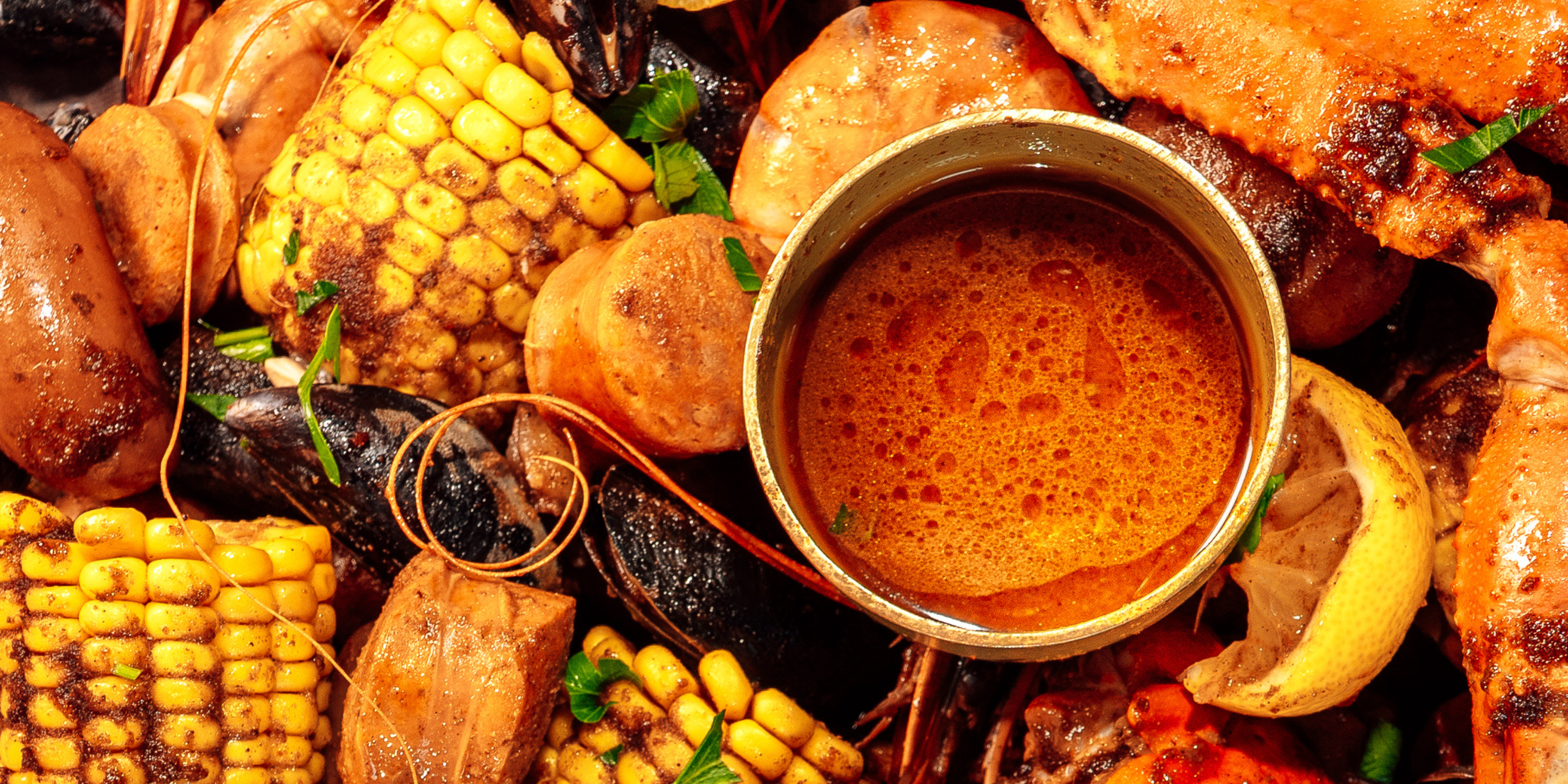 Think shrimp, crab, mussels, corn, potatoes, and sausage. Simmer everything together until cooked through and the flavors have melded.